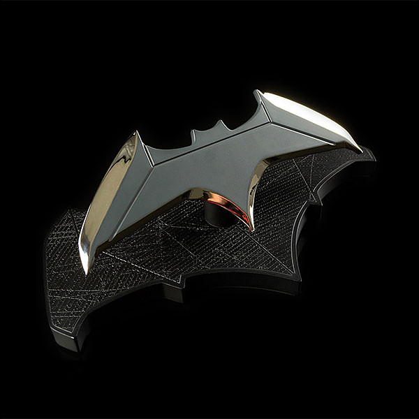蝙蝠飛鏢絕對是最能代表蝙蝠俠的招牌武器,表面超細緻的打磨、光亮的銀色、深具高貴感的金屬材質,相信許多玩具人都夢想擁有一組蝙蝠飛鏢可以射來射去吧!這次由ThinkGeek 推出的蝙蝠飛鏢採用班·艾佛列克版本蝙蝠俠的造型設計,兩側的翅膀形狀與以往不同,搭配展示地台實在太讚啦~~