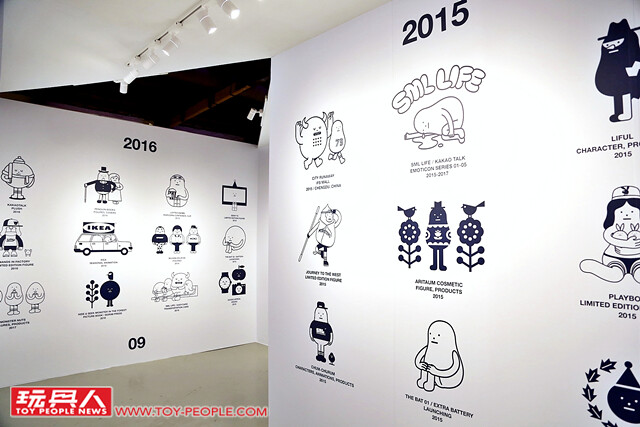 ▼ 一下太空船,當然要經過一段彎彎曲曲非常神秘的「怪物空橋」才可以來到怪物星球的入境處啊!而這一段怪物空橋的設計則是將Sticky Monster Lab 品牌從2007 年成立至今年2017 年,這十年當中的「大記事」;有別於一般年表以文字籠統的呈現方式,Sticky Monster Lab 則是採用了可愛的圖像來將品牌的發展史可愛呈現啊!