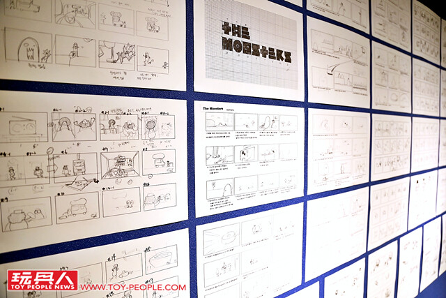 ▼ 而在怪物藥局的二樓,則是來到了設計師工作的現場,牆壁上貼滿了許多產品、動畫分鏡圖的草稿(小編溫馨小提醒:各位玩具人去參觀的時候不要偷偷撕走喔~~)。