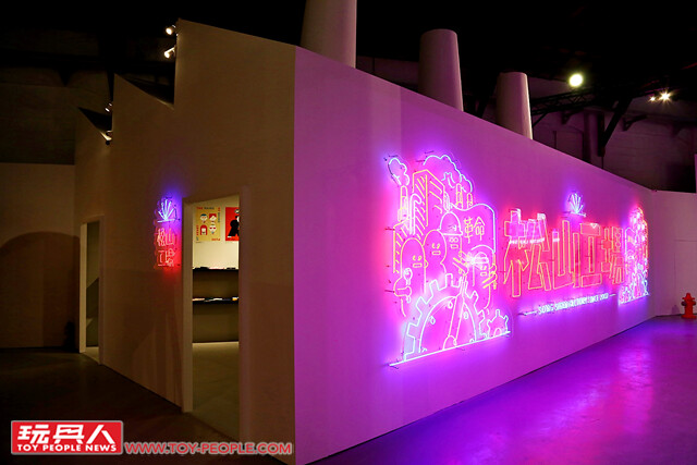 ▼ 來到的「松山工場」,在工廠的外觀採用了極為搶眼的霓虹燈作為設計,而在工廠中則是展出了歷年來不同品牌與Sticky Monster Lab 所聯名的各式商品!眼尖的玩具人有注意到嗎?!「玩具人 × Sticky Monster Lab」的玩具也有被展示出來啊!!(小編傲嬌中~~)