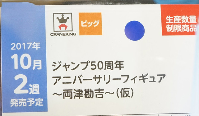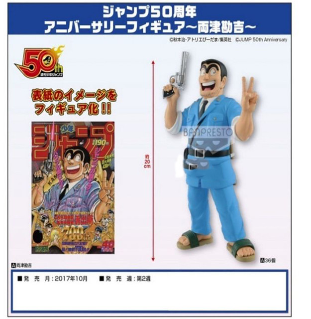 日Banpresto品牌這次將以"週刊少年JUMP 50週年(ジャンプ50周年)"為題材,推出多款在JUMP漫畫雜誌上深受漫畫粉絲們喜愛的漫畫作品,推出50週年的紀念景品,這款是《烏龍派出所》裡面大人氣主角「兩津勘吉(両津勘吉)」於週刊少年JUMP第40期封面姿勢來呈現,喜歡比YA的招牌經典動作成為50週年的紀念作,喜愛《烏龍派出所》的玩具人怎能不入手!!