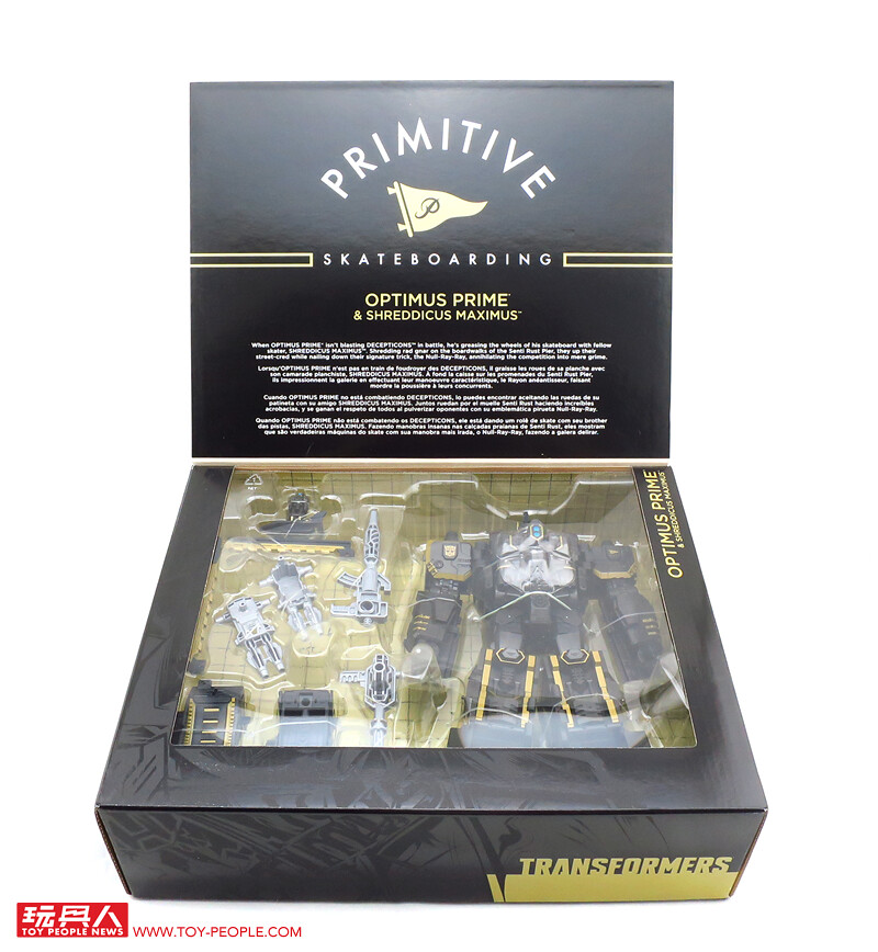 而第二款限定品,則是和知名滑板品牌「Primitive Skateboarding」所聯名推出的柯博文,由傳奇的滑板明星Paul Rodriguez親自帶領的Primitive,可說是LA獨樹一格的街頭品牌,這次的聯名限定品,更是將滑板的元素發揮得淋漓盡致。一改柯博文過去的經典紅藍配,這回Primitive聯名的「黑金」配色可說是相當低調又具有質感的組合,本體除了源於《泰坦之戰》的多樣化玩法,禮盒中更附屬了獨特的滑板、軌道及斜坡等配件,不僅可以在各種模式下搭配遊玩,更能在機器人模式下組合成武器,可說是本款最讓人驚喜的亮點!那麼接下來,就讓我們來見識這兩款超級限定品的強大魅力吧!
