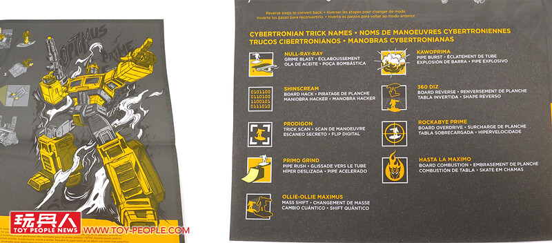 ▼ 除了金光閃閃的柯博文,在說明書的一角甚至還刊載了塞博坦的各種滑板術語呢!