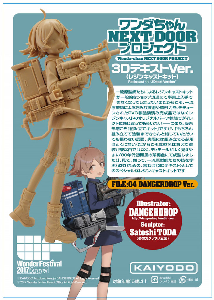由日本兩大玩具公司「海洋堂」與「GOOD SMILE COMPANY」攜手合作,將模型展「Wonder Festival」的形象角色「Wonda-chan(ワンダちゃん)」立體化的企劃「Wonda-chan NEXT DOOR PROJECT」今年也將推出第四彈作品「FILE04: DANGERDROP Ver.」,商品預計於 07 月 30 日舉行的「Wonder Festival 2017[夏]」會場中限定販售。