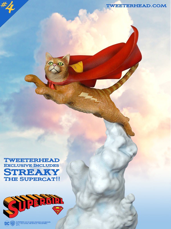 而女超人也有養了兩隻寵物喔,一隻是名為「Comet」的白色Superhorse 以及一隻叫做「Streaky」的土黃色Supercat。值得一提的是,這次在Tweeterhead 官網販售的版本有附上超可愛的超級貓「Streaky」喔!此外,Super Powers Collection 系列招牌的一飛衝天造型也完全將女超人的力與美完美結合!有興趣的玩具人不要錯過囉。