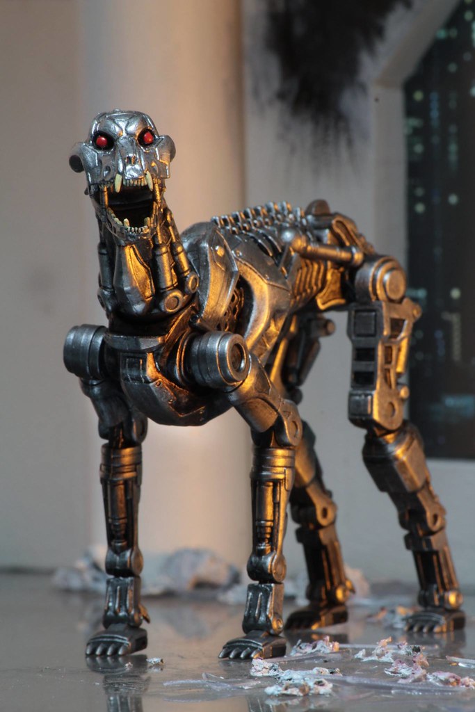 這次的作品相當令人驚艷~超適合拿來徵兵呈現未來大戰的場景,除了改裝後、配有機器戰警裝備的終結者之外,狗型的終結者實在太酷了!NECA 採一貫的7 吋比例製作,兩者都具備20~25 個可動關節,也包含非常有代表性的「AUTO-9半自動手槍」(Auto 9 pistol),本作將會在SDCC NECA 的攤位先行展示,相信那隻狗型終結者絕對讓許多粉絲相當興奮啊~