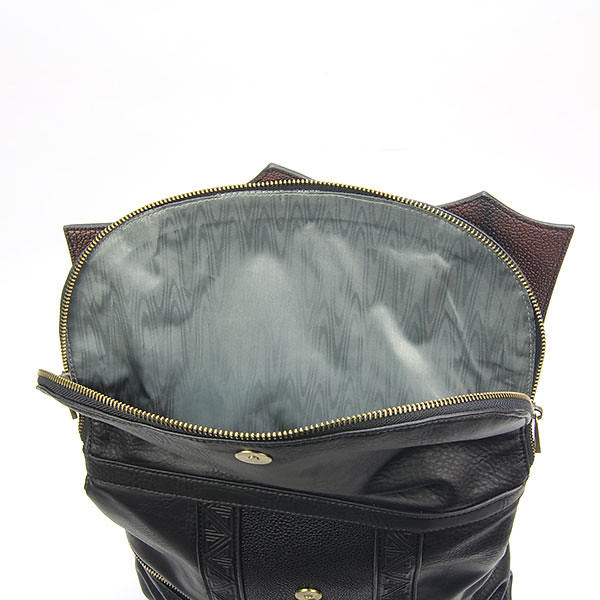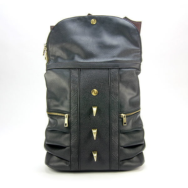 這次的後背包實在很狂啊~以搶眼的黑、金配色為主題設計,頂端以帶有磁性的龍翅膀覆蓋著,突出的龍爪造型真的很有趣,可以拿來攻擊不遵從妳意志的人(笑~);實用性部分有兩個側邊口袋、兩個內袋、也配有筆電專用的收納空間,「Game of Throne」的字樣和濃厚的皮革材質都讓作品更增添質感喔,這麼狂的背包美劇迷不來一個嗎?!