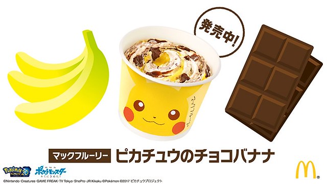《精靈寶可夢劇場版 就決定是你了!》好評熱映中!日本麥當勞除了在上映當週推出一系列「精靈寶可夢 快樂兒童餐玩具」外,同時也推出了超人氣冰品聯名款「皮卡丘冰炫風 巧克力香蕉風味」!不過這項商品目前只有在日本麥當勞獨家販售,而且是期間限定,到日本看完劇場版後就順便來一杯吧!