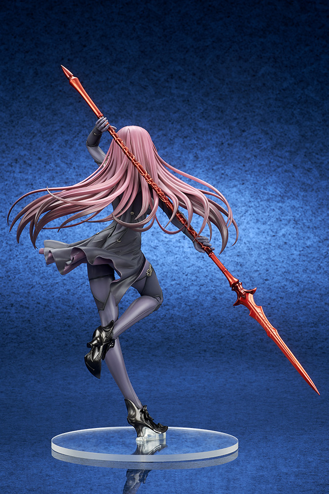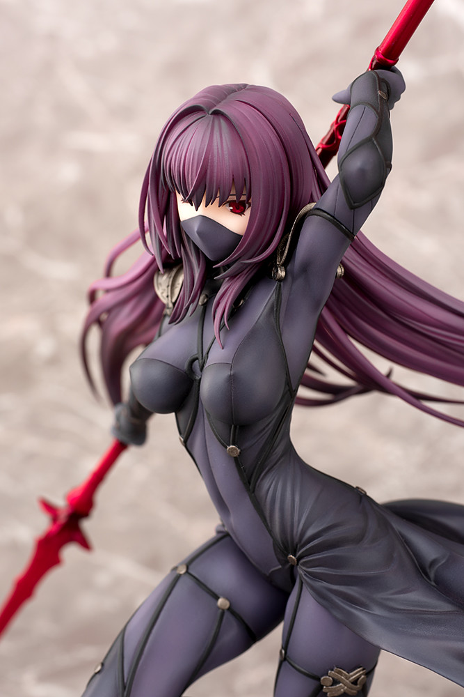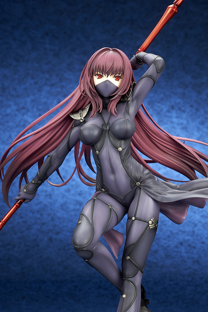 「Lance/斯卡哈 初期階段」以預計在今年 08 月發售的「Lancer / 斯卡哈」為基礎,在頭雕上追加了黑色面罩再現遊戲中未強化的「初期階段」姿態。整體色調也再現了原畫之間的差異,調整成比一般版更為暗沉的色澤,呈現出現階段神秘的形象。