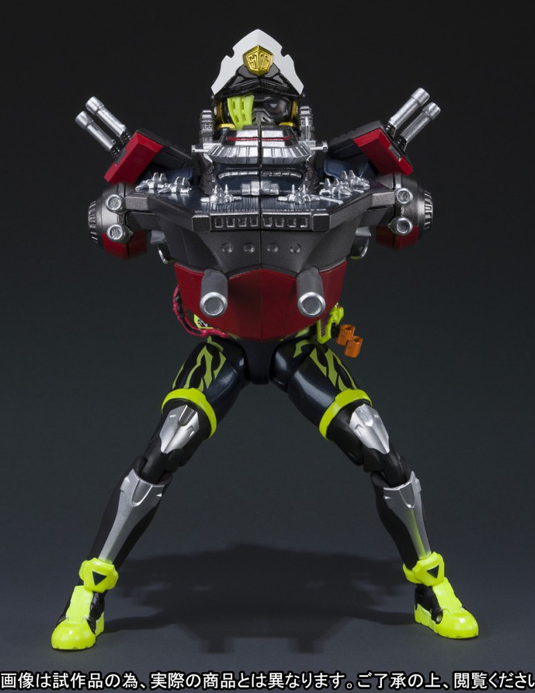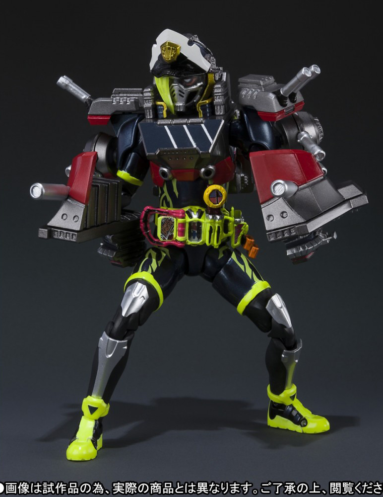 在造型上半身裝備多具連裝砲及單發砲,並且能像戰艦一樣偵測複數目標再鎖定發炮攻擊,這次將雙臂上戰艦武器可以合併起來的樣貌也完整呈現,身上以銀、紅、黃綠與深藍為主要顯眼的配色等等,作品預計於PREMIUM BANDAI(p-bandai)在2017年7月21日開始接受訂購,喜愛《假面騎士》系列特攝劇集的玩具人可以參考一下歐!