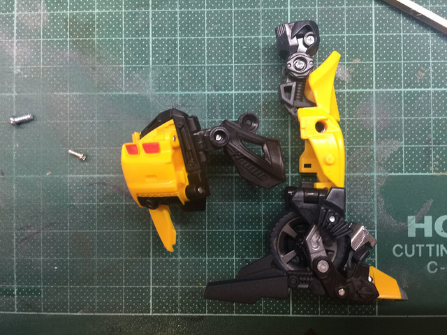 變形金剛玩具用了很多金屬樁,因為我不會拆,所以我只卸下部分螺絲,能拆的就拆,不能拆的就遮。