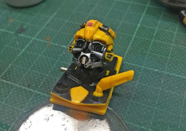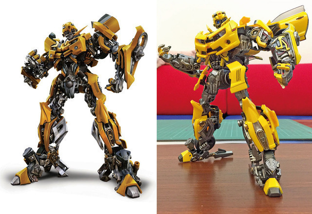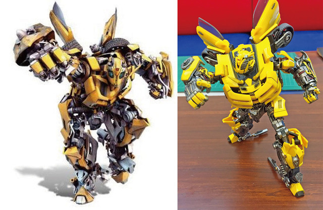 這個角度已經很接近電影設定圖啦,我有把大黃蜂的衣領修尖銳,感覺比較好看。