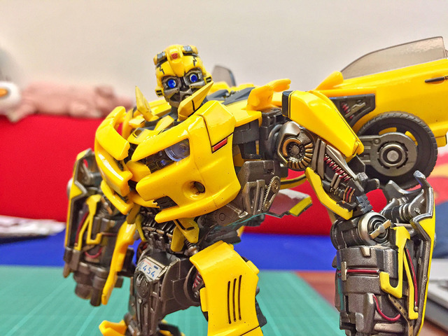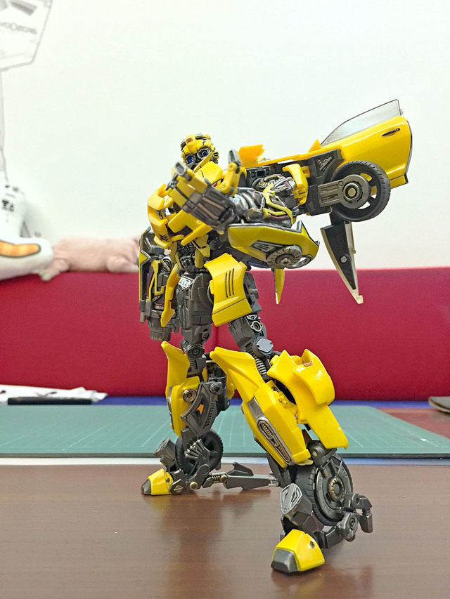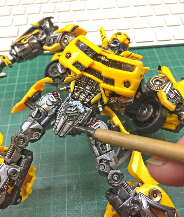 因變形金剛5的上映,再度帶起變形金剛熱潮,雖然看完電影頗為失望,但還是鎖定了幾款出色的變形金剛玩具準備敗入,而mpm-03就是其中之一款,這款大黃蜂大概是改良近十年來的的優缺點,重新推出第一集2007雪弗蘭車款,兼具身形比例協調,載具變形更堪稱最完美的大黃蜂,號稱無背包版本。只是我對本體顏色不是很滿意,所以決定重新改色塗裝,讓這這麼模具更為完美。