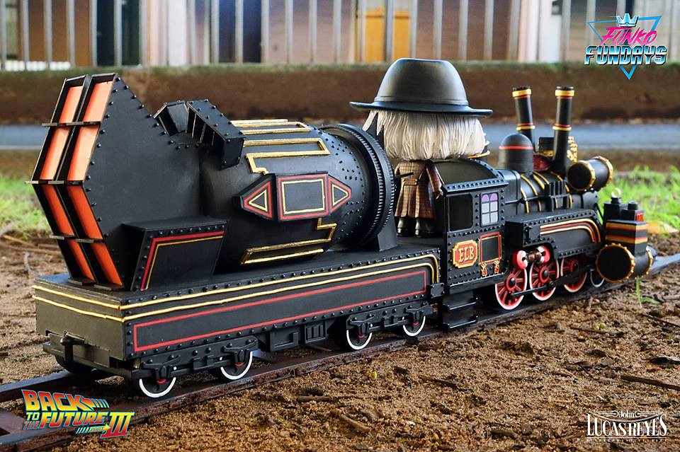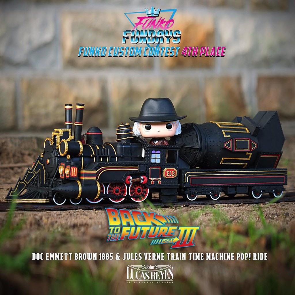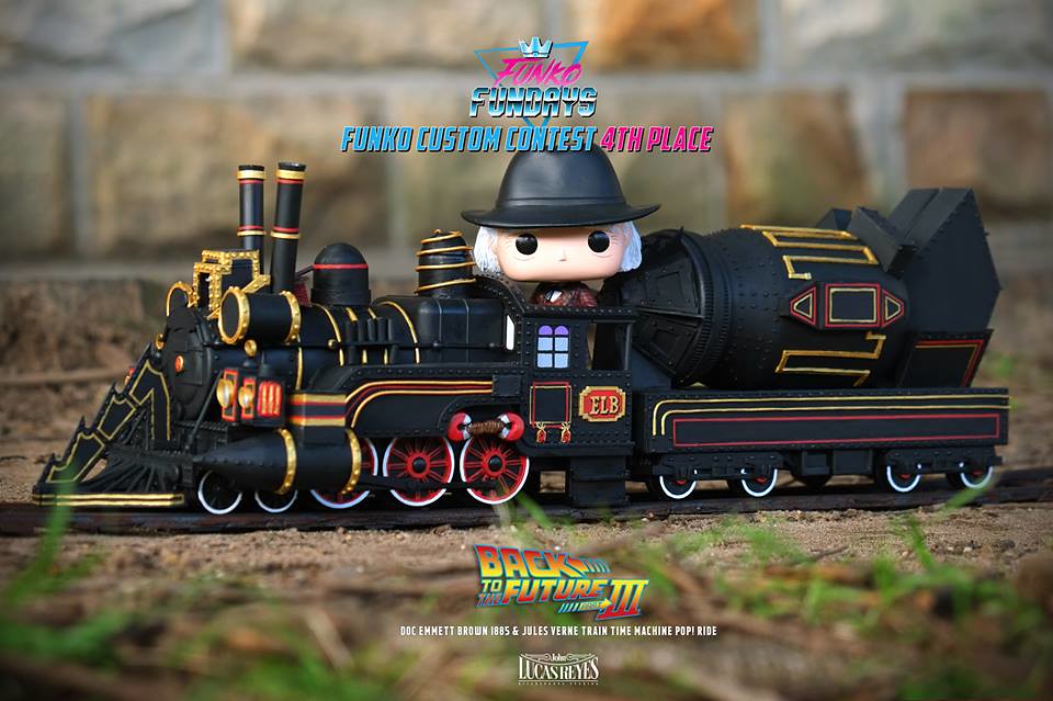過去,歐美玩具大廠FUNKO 公司曾經在旗下POP! RIDES 系列推出過電影回到未來「馬帝與時光車」的作品。而在今年FUNKO 公司所舉辦的「歡樂日玩家大賽」(Fundays 2017 Custom Contest)中,一位來自澳洲的玩家所創立的「Riverspoons Studios」則是帶來了超炫的「布朗博士與時光火車」(Doc Emmet Brown 1885 with Jules Verne Train Time Machine)作品參賽,並拿到了第四名的殊榮。