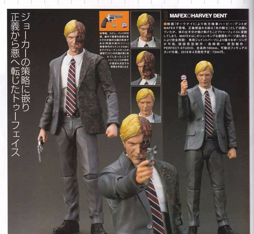 日本知名玩具品牌MEDICOM TOY 公司旗下的可動玩具系列MAFEX 以諾蘭版蝙蝠俠電影《黑暗騎士》(The Dark Knight)為題推出許多作品,繼日前介紹的「小丑:搶劫銀行版本」(The Joker Bank Robber Ver.)、「小丑ver. 2.0」(The Joker ver. 2.0)等等精彩人偶後,最新作將推出高譚墮落的白色騎士「哈維·丹特」(Harvey Dent),預計2018年4月發售!