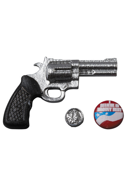 這次MAFEX 推出的「哈維·丹特」相當精彩,一次讓你擁有西裝筆挺的哈維,以及被燒傷、內心墮落的雙面人版本,頭雕自然包含兩種,被暱稱為「阿波羅」的金髮版、和半邊臉被燒爛的版本,焦黑的痕跡、潰爛的皮膚做工相當細膩;配件部分包含極具代表性的硬幣、手槍,那「BELIEVE IN HARVEY DENT」的徽章除了提高本作的張力,更是令人不勝唏噓~以亞倫·艾克哈特為形象的「哈維·丹特/雙面人」玩具較為少見,相信許多《黑暗騎士》粉絲都會收藏的吧!