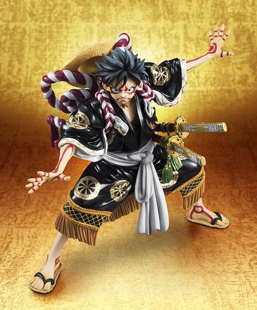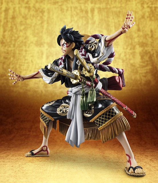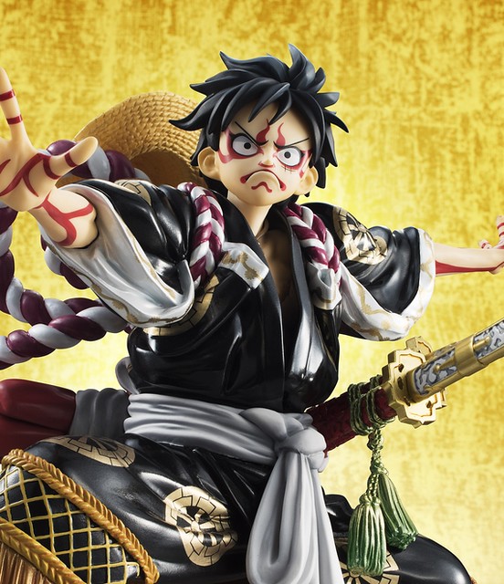 P.O.P. 蒙其・D・魯夫 KABUKI EDITION,是以尾田榮一郎老師所繪製的插畫來立體化,並由曾經為「Portrait.Of.Pirates」系列操刀,推出多款高水準作品的頂尖原型師MAS與五十嵐玄搭檔製作,並由塗裝師アンドウケンジ 施以大膽、華麗的彩色,搭配上特殊規格的金色塗裝,讓魯夫的千兩役者*註的歌舞伎造型變的更加華麗、帥氣!~