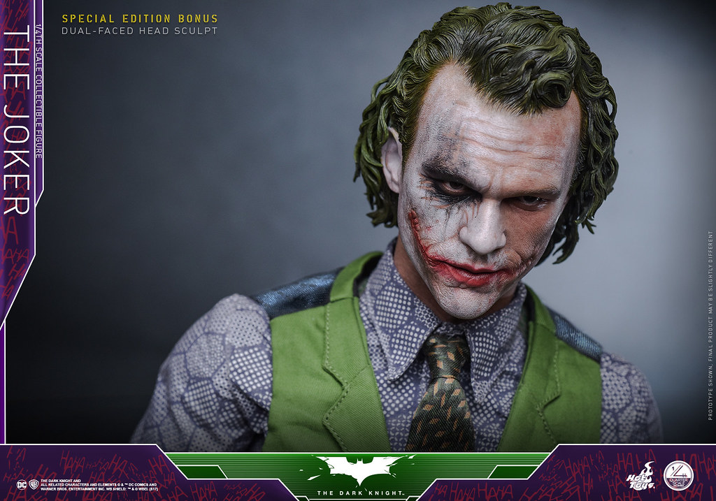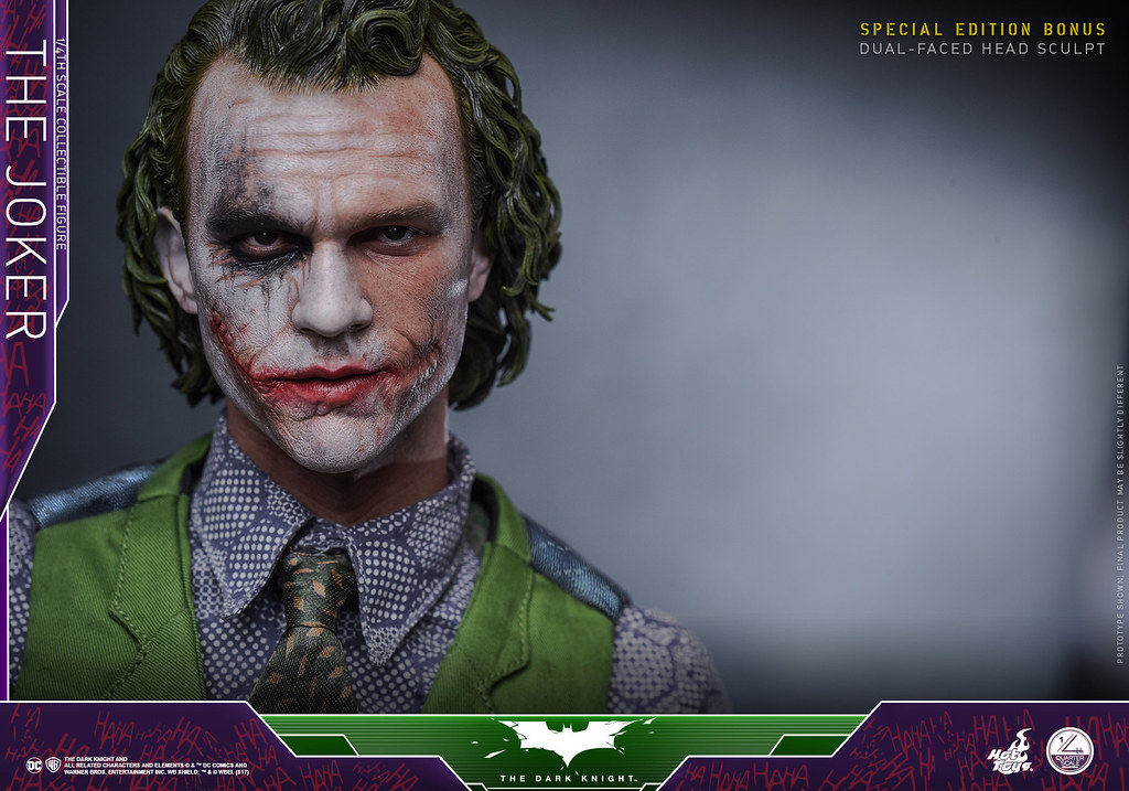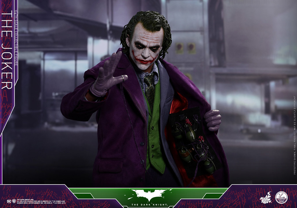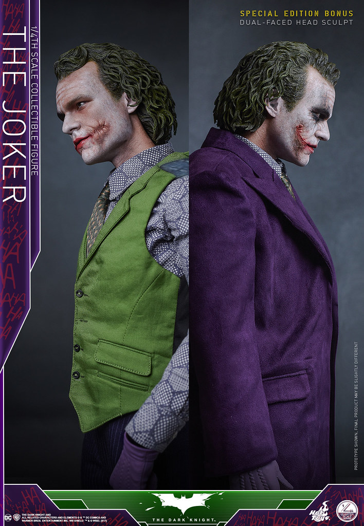 既然有1/4 比例的「蝙蝠俠」(Batman)人偶作品,諾蘭版蝙蝠俠三部曲中呼聲最高的《黑暗騎士》(The Dark Knight)裡的終極反派、高譚市的犯罪王子「小丑」怎麼會缺席呢?Hot Toys 宣布將推出「小丑」的1/4 比例人偶作品,預計2018年第一~第二季發貨!