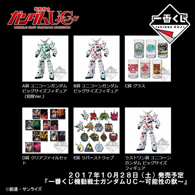 日本 BANPRESTO 公司旗下抽抽都有獎的「一番賞(一番くじ)」系列發表了最新商品,來自《機動戰士鋼彈UC》的「機動戰士鋼彈UC ~可能性之獸~」預計於 2017 年 10 月 28 日發售的消息。