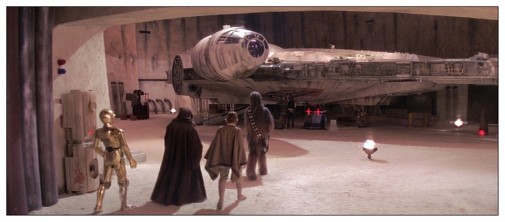 ▼ 《曙光乍現》中千年鷹號停泊於塔圖印Mos Eisley 太空港Docking Bay 94 的電影實際畫面