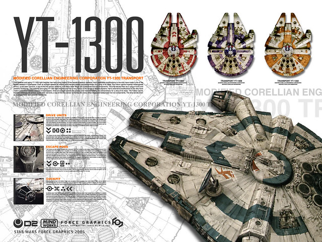 ▼ 千年鷹的原型是由三大知名的飛船製造公司之一:柯瑞里安工程公司(Corellian Engineering Corporation,簡稱CEC)所製造,型號為YT-1300。