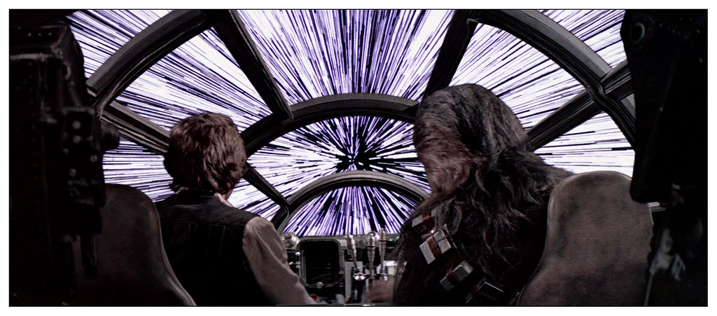 ▼ 千年鷹號跳入Hyperspace 超空間飛行時的特殊視覺效果。