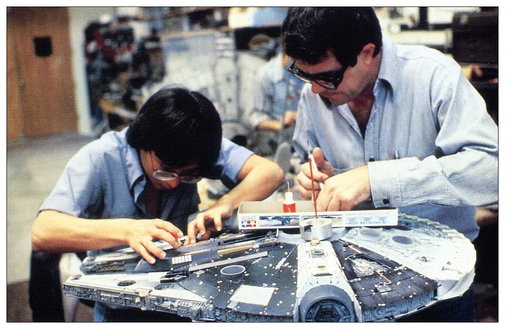 ▼ 光影魔幻工業(ILM)的藝術家們正在製作拍攝用的千年鷹號模型。
