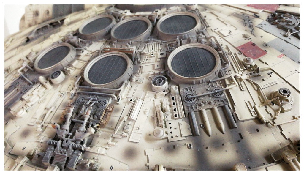 ▼ 千年鷹號尾部上方的六個圓形散熱口後側,就是以三個二戰德軍虎王坦克的引擎蓋所刻畫出來。