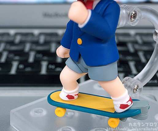 外表看似小孩,智慧卻過於常人「黏土人 江戶川柯南」將那萬年不變的招牌服裝徹底再現!眼鏡、蝴蝶結都能卸下,並換上可拿在手中的「蝴蝶領結變聲器」,擺設出在暗處推理的場景!表情零件附有「普通臉」、得知真相的「認真臉」以及吐嘈時會露出的「傻眼臉」,再搭配附件中的黑科技「雙引擎滑板」就能再現追逐犯人的場面喔!