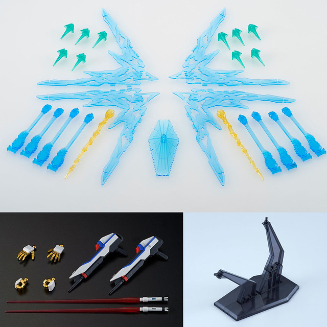 特效零件則能再現炫炮的「光之翼」、8 枚「超級龍騎兵」的射擊狀態、光束盾以及火力十足的「全砲火展開模式」,除了腹部的「遊隼式」複相光束砲外,每樣武器都具有專屬的攻擊特效!
