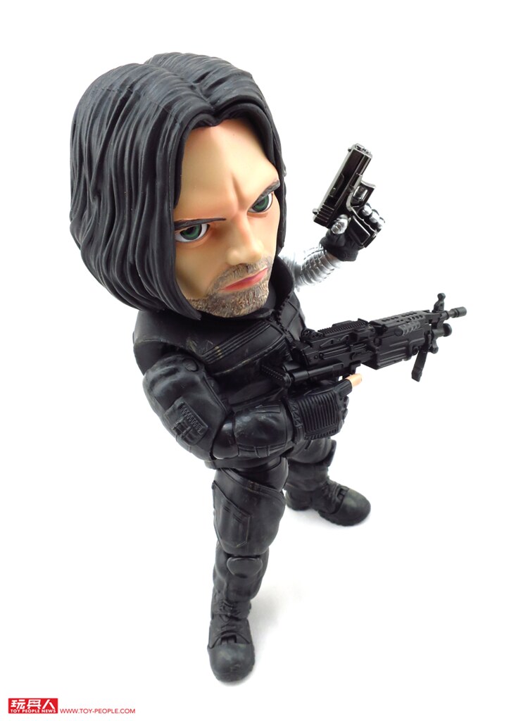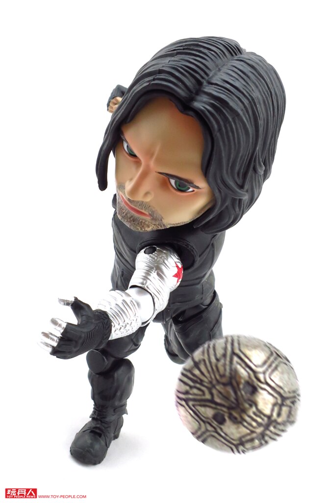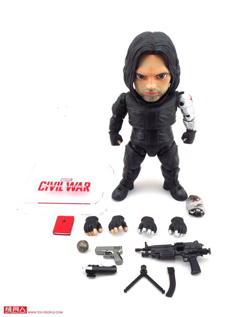 承襲了EAA系列一貫的優良傳統,這款酷寒戰士同樣擁有著近乎六吋的身高及26處的高可動關節,可說是造型和可動兼備的最佳典範,而本次的配件也一舉附屬了電影中巴奇所使用的武器,包括了金屬製的手槍及球形手榴彈,拋繩槍以及重機槍,除此之外,更附上電影中令人印象深刻的那本洗腦紅皮書和劇情尾聲遭鋼鐵人破壞的斷臂,可說是相當豪華的配件組合,與過去所發售的同系列美國隊長(EAA-029)、黑豹(EAA-033)等等,均可連動重現電影中的激戰場景,喜愛英雄內戰的美國隊長粉絲,怎麼能錯過這最佳的好友組合呢?!