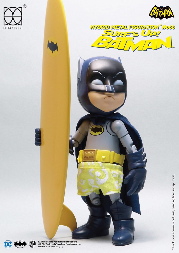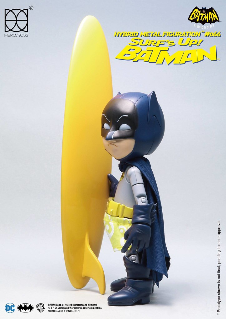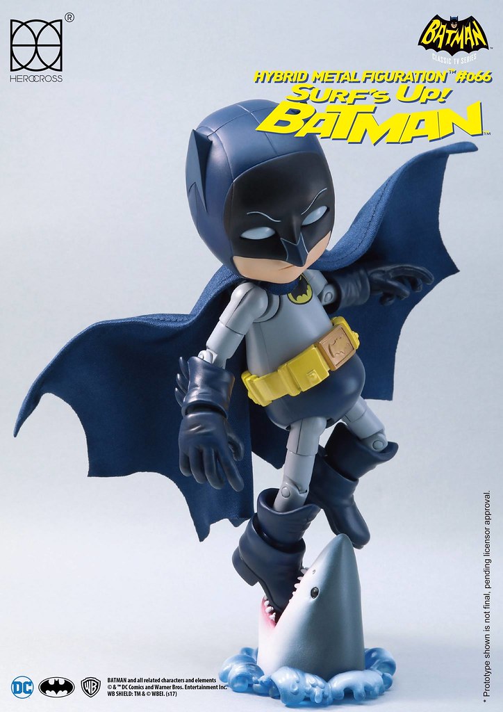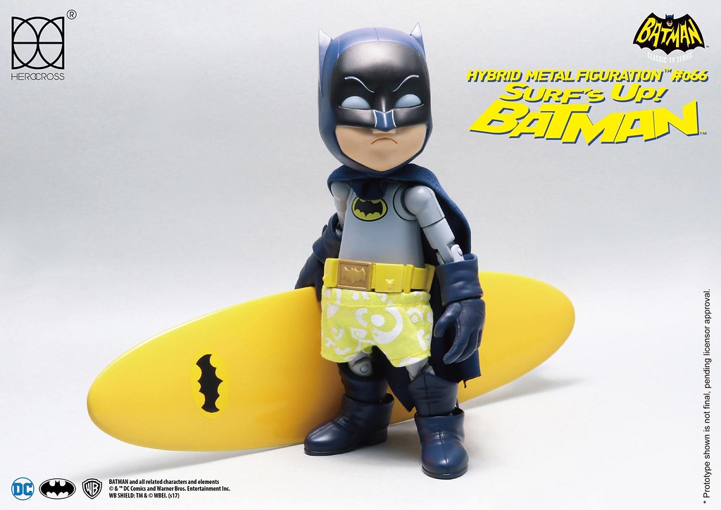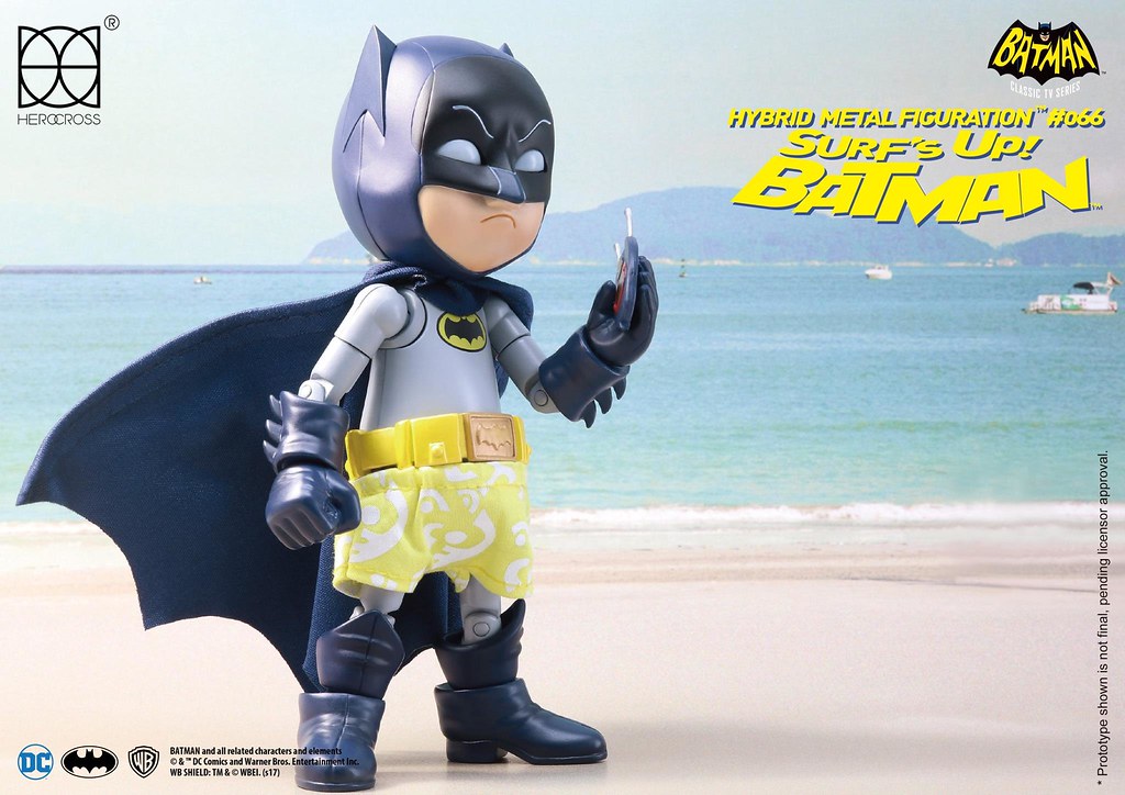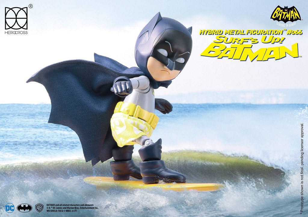 香港知名玩具品牌HEROCROSS 旗下受到熱烈歡迎的Q 版可動系列「Hybrid Metal Figuration」曾以1966年的蝙蝠俠「經典電視劇版」為題推出過「蝙蝠俠&羅賓」的人偶,日前又發表了來自經典電視劇版中十分滑稽、超無俚頭的「衝浪蝙蝠俠」(Surfs Up Batman)作品,實在太萌了啊!