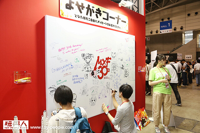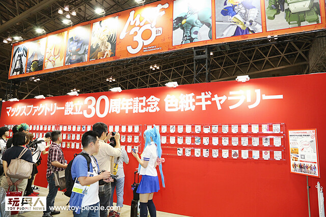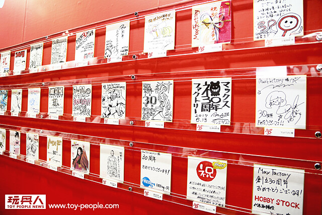 一旁的 Max Factory 30週年專區在牆上印下公司成立以來的重大事件、商品發售年表,甚至將至今推出的重要商品一口氣展出!入場者還能免費獲得 Max Factory 社長「MAX渡邊」的 1/20 比例組裝模型!