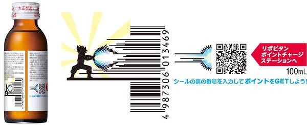 ▼限定包裝的「力保美達」連條碼都精心設計呢!店員必須全力運氣,使出「龜派氣功」(かめはめ波)才能掃得到瓶子上的條碼!相信店員勢必也得喝上許多瓶吧!(揍飛~)
