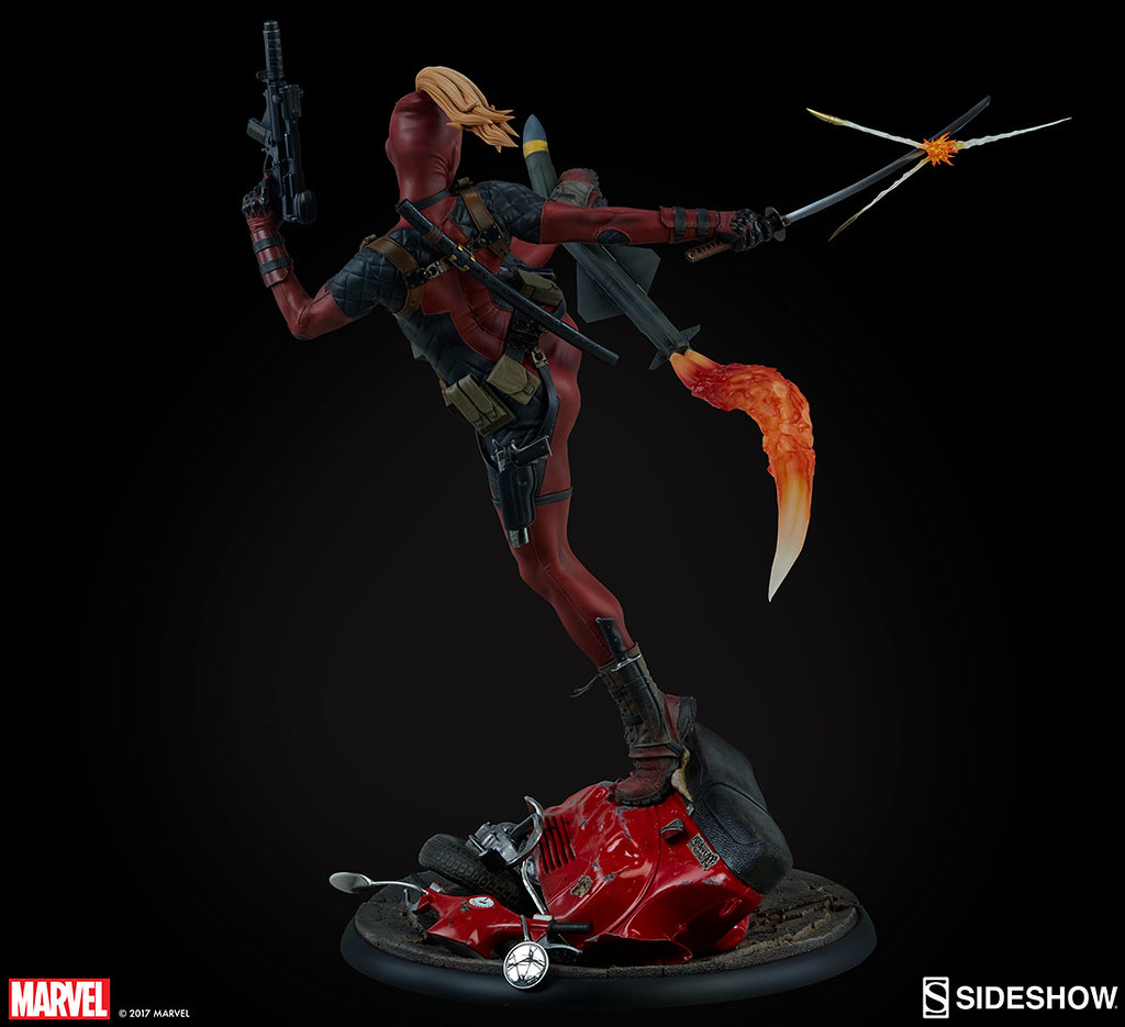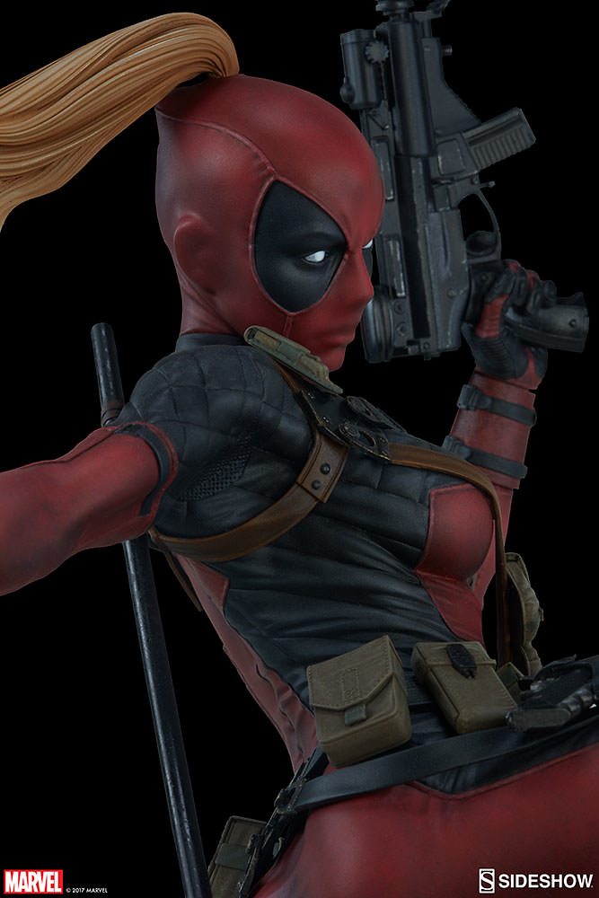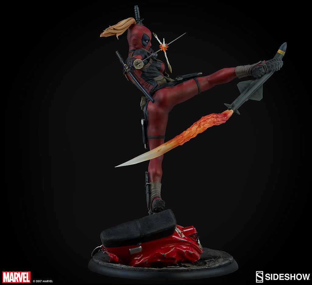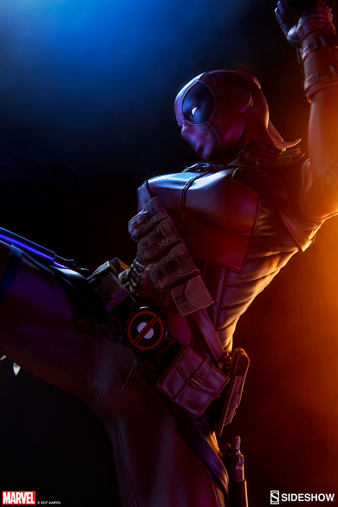 Sideshow Collectibles 公司繼日前推出了1/4 比例「死侍時間靜止中」(Deadpool Heat-Seeker)的雕像作品之後,又將要在其旗下最高水準Premium Format™ Figure 系列推出一款全新「死侍小姐」(Lady Deadpool)的全身雕像作品。