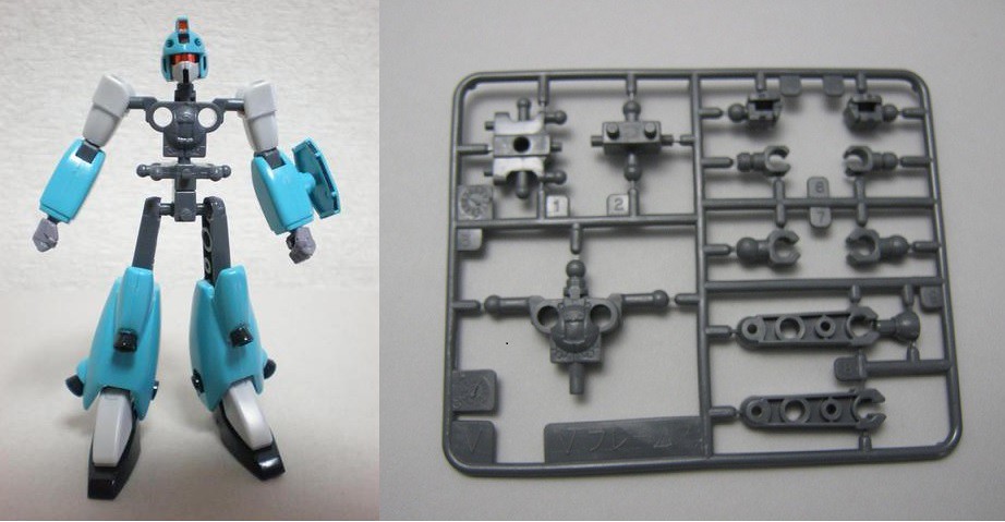 ▼ 從1993年V鋼彈開始,鋼彈模型開發出名為V Frame的PE軟膠骨架系統,每一架1/144模型之間可以互換手腳等零件。