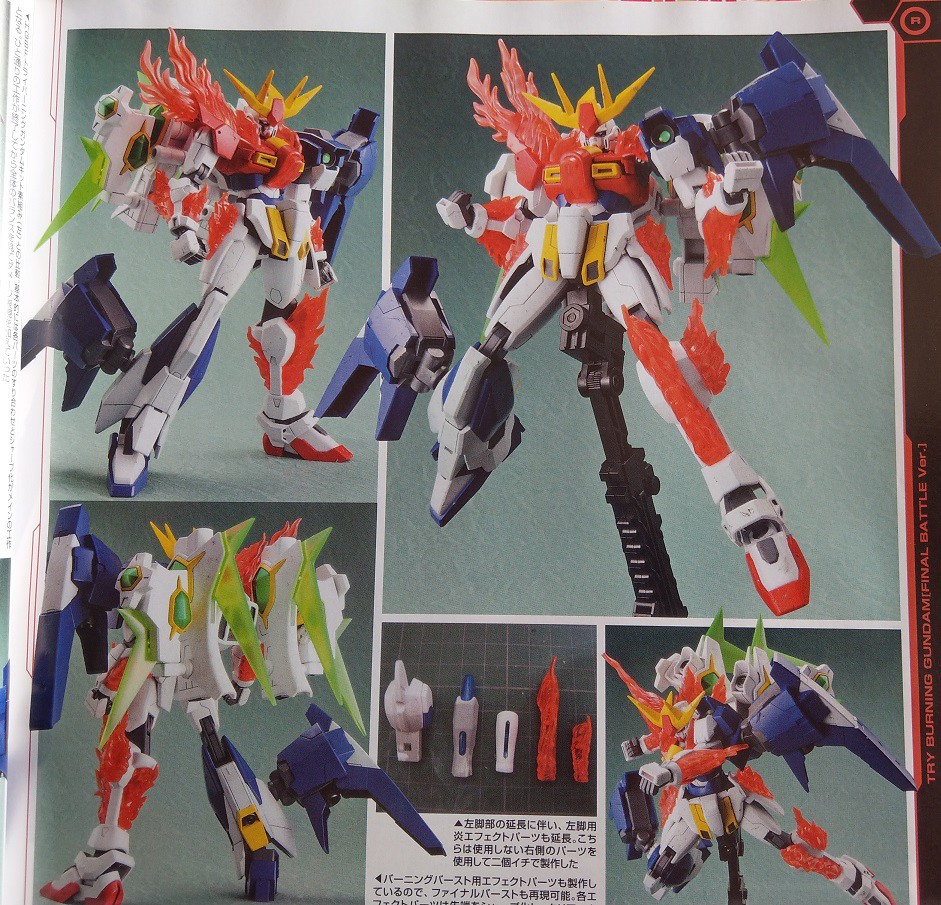 ▼ 《創鬥者》第二季第24話「最終爆發」,主角三人的機體拚湊成TRY燃燒鋼彈展開決戰,可說是《鋼彈創壞者》的具體應用實例。照片來源:《HOBBY JAPAN》2015年6月號。