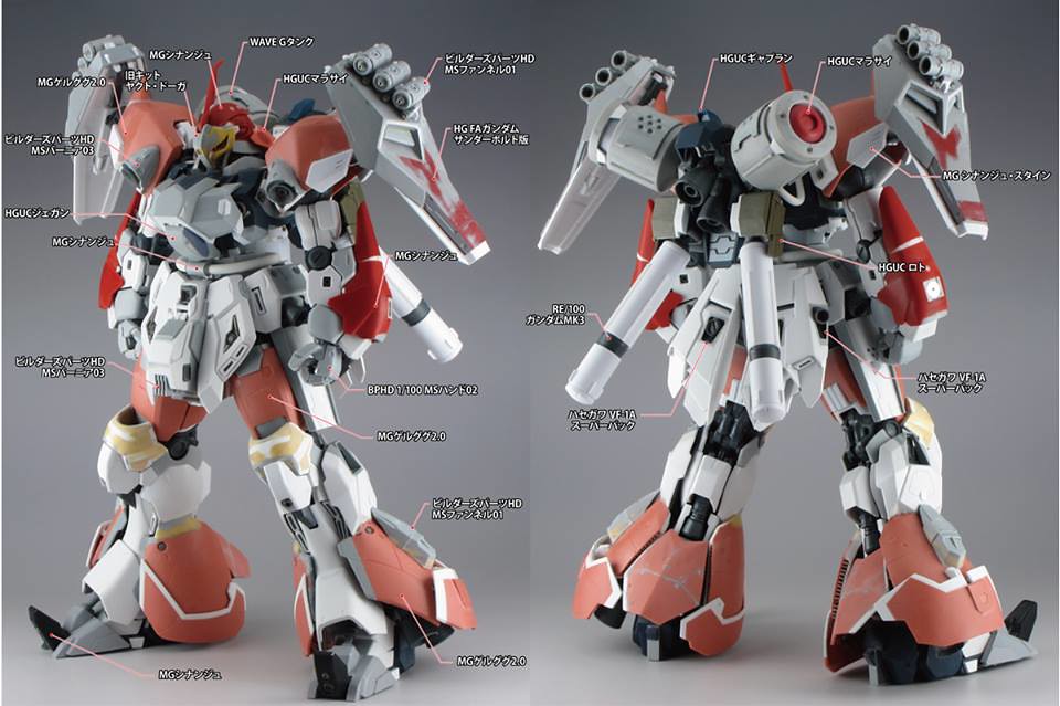 ▼ 公布答案,頭部和軀體是RX-78-2初鋼,右手和背包是鋼加農,左手、盾牌和左腳是《雷霆宙域》版陸戰型鋼彈,右腳是《鋼彈ORIGIN》MSD局地型鋼彈,你全部猜對了嗎?