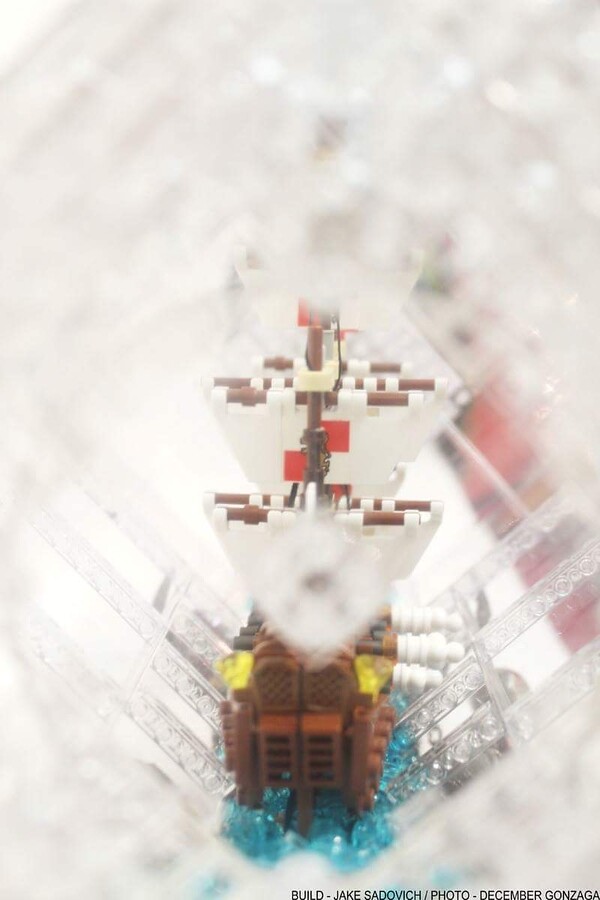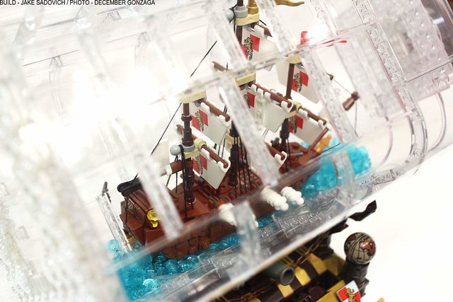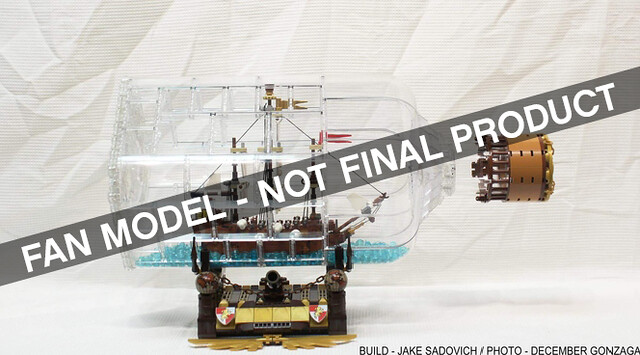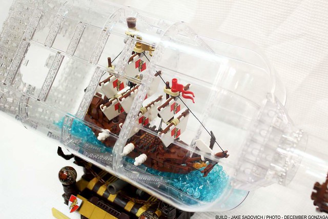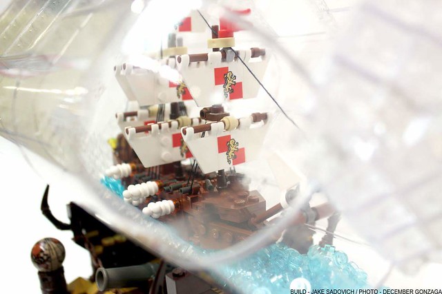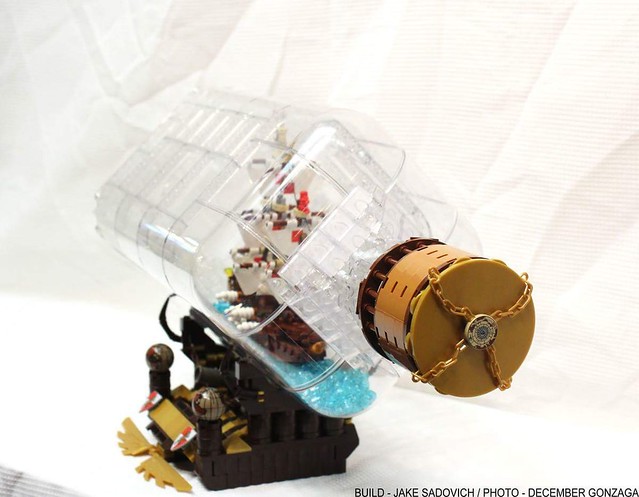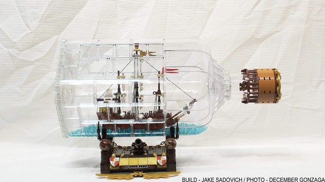 來自「JakeSadovich77」的精心設計,船體本身尺寸雖小,但是船忛、大砲等細節都不馬虎,連射擊時的白煙都精巧呈現;大量透明件的運用則提升作品整體的質感,瓶蓋的設計更是相當有意思!相信這款瓶中船組裝起來應該比真的瓶中船容易不少~