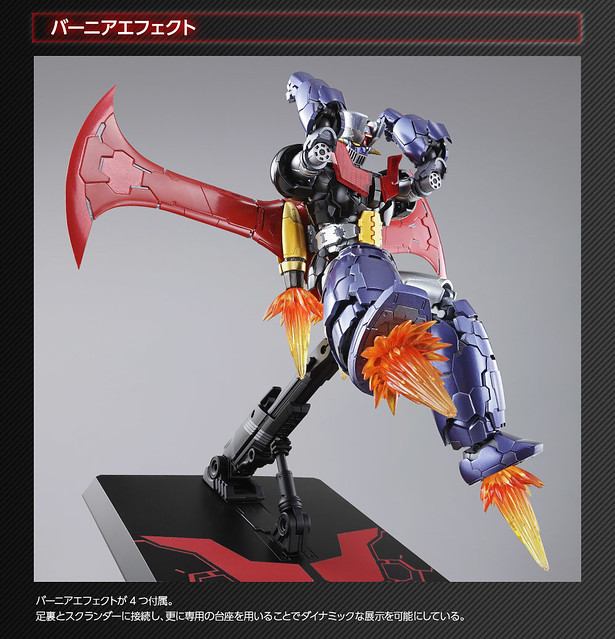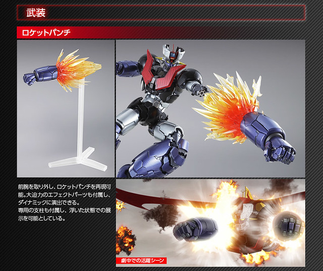 商品全高約 180mm,胸部放熱板以透明材質製成,能看見內部的格狀構造。附有兩種造型的指揮艇、金剛飛翼、金剛飛拳用腕部零件、大量特效零件...等豐富配件。能夠再現金剛飛拳、金剛飛刀、鋼釘飛彈、金剛飛鏢等經典招式。透過零件更能演出將腹部展開、露出彈頭的場景,並發射出大尺寸、大魄力的金剛飛彈!