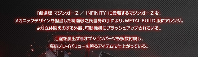 由日本BANADI萬代玩具公司收藏玩具事業部發行,旗下最具人氣的合金玩具「METAL BUILD」系列,最新商品將推出來自永井豪畫業50周年記念作品《劇場版無敵鐵金剛/INFINITY》的「METAL BUILD 無敵鐵金剛」,預計 2018 年 02 月發售。
