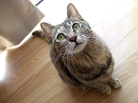 見上げる猫