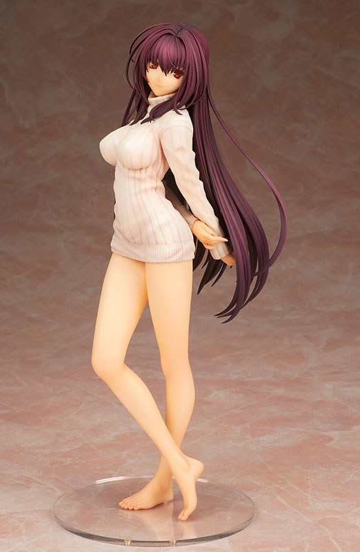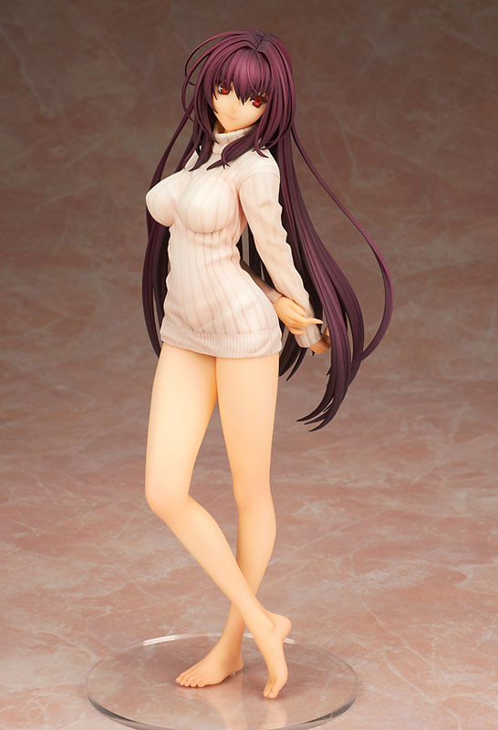 有著極高人氣的斯卡哈身穿一襲神秘又性感的黑色緊身衣,手持紅如鮮血的「貫穿死翔之槍(Gae Bolg alternative)」。她性格孤高,是個天生的支配者,其真身是凱爾特神話中「影之國」的女王與守門人,她因為弒神遭詛咒而「不死」。精通槍術與符文魔術的天才,亦是後來的愛爾蘭英雄「庫丘林」的導師。這次的居家服造型則是出自角色設計者「こやまひろかず」發表的插圖。