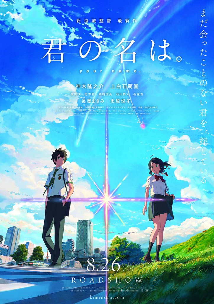 《你的名字》(君の名は。)是「新海誠」的第六部長篇動畫,故事圍繞著「立花瀧」與「宮水三葉」,在入眠後就會奇妙地交換靈魂,但醒來後卻什麼也不記得;以洋溢著青春的少女動漫方式開場,輕快的步調逐漸帶出神秘、離奇的發展.....