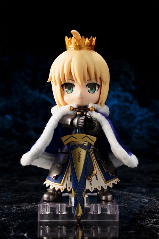 「Cu-poche Saber/阿爾托莉亞・潘德拉岡」以遊戲中靈基再臨第2階段的造型為基礎,附有布質披風以及王冠再現「亞瑟王」的姿態。卸下這些配件、拿起「誓約勝利之劍(Excalibur)」後就是我們平時熟悉的Saber,服裝、劍鞘「阿瓦隆(Avalon)」皆有細膩的色彩與圖樣,鎧甲部份也以金屬色塗裝,還附上了多種表情零件展現王的威嚴或溫柔笑容!