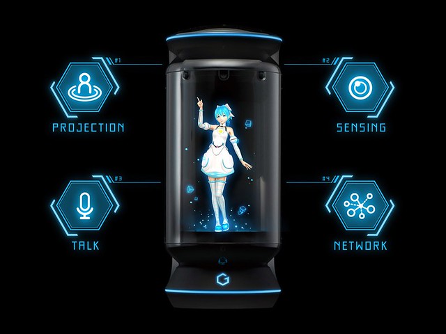 為了實現與虛擬角色共同生活的願望,「Gatebox」作為世界首款虛擬家庭機器人誕生了!透過最先進的投影技術與感測技術,全像投影出細膩的虛擬角色。在結束繁忙的一天後,Gatebox 中的虛擬角色能夠做出貼心的互動,就像真實的家人般交流。此外也能與手機app、智慧型家電連結,即使不在她身邊也能透過app聊天!