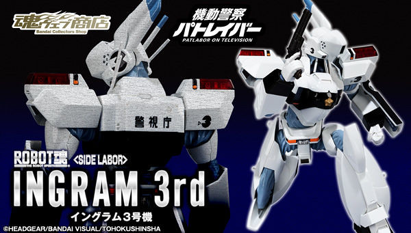 日Bandai萬代玩具公司的ROBOT魂可動系列以《機動警察》動畫為題材,已經公開將推出「英格拉姆1號機」、「英格拉姆2號機」、「布羅肯」和「Tyrant2000&作業現場道具組」、「沙登」以及「零式」之後,近日官網再曝光其系列將推出「英格拉姆3號機(イングラム3号機)」機體!