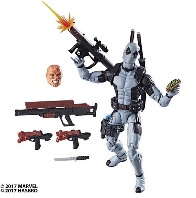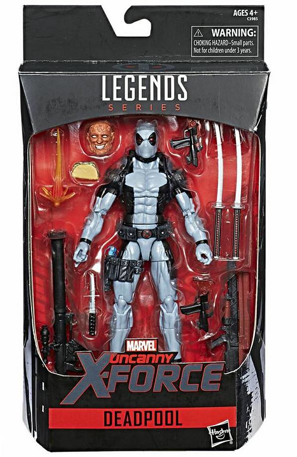這一款將於「Hascon」限定發行的X-Force 死侍,將沿用去年發行的Marvel Legends 死侍備受好評的高度可動素體;除了素體變更為X-Force 的灰黑配色之外,還保留了雙刀、爛臉頭雕與墨西哥捲餅配件。 原本搞笑的拳套火箭筒則是更改了配色,並把拳套改為射擊效果零件,配槍也從一般的武器變更為X-MEN的高科技武器。