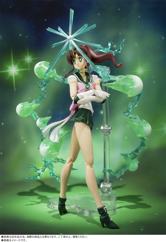 日BANDAI萬代玩具公司的暢銷熱賣S.H.Figuarts可動系列,以人氣動畫《美少女戰士》為題材推出過「水手V」、「燕尾服蒙面俠」、「小小兔」、「火野麗」、「偽美少女戰士」、「天王星 天王遙」與「海王星 海王滿」等等多款動畫系列所出現的角色人物,這次將以《美少女戰士》25週年紀念來繼續把《劇場版美少女戰士SuperS》裡面的"木野真琴"「(超級水手木星) スーパーセーラージュピター」(名稱暫譯)來推出可動系列續作。