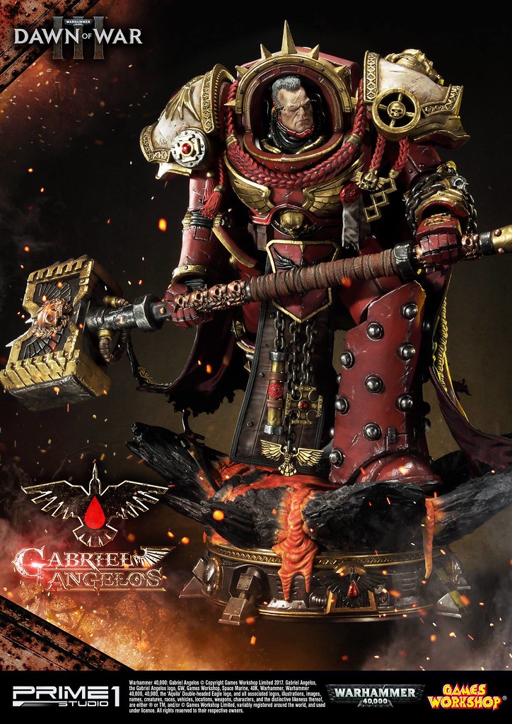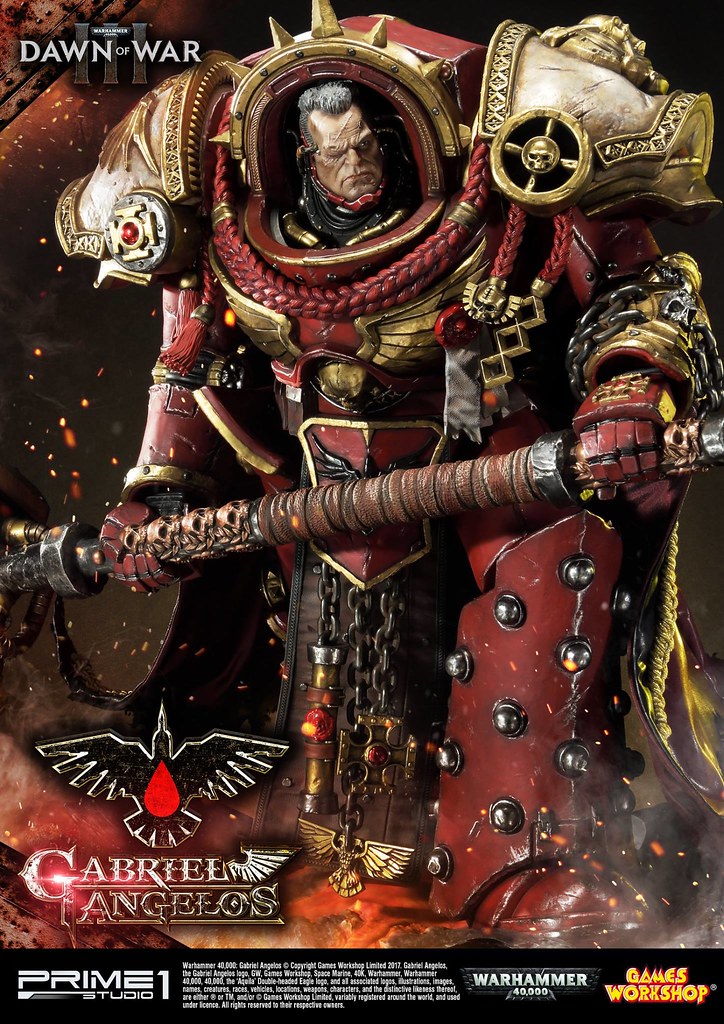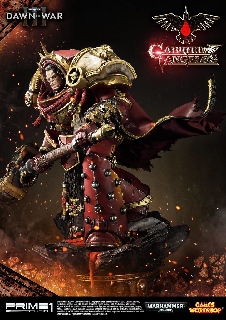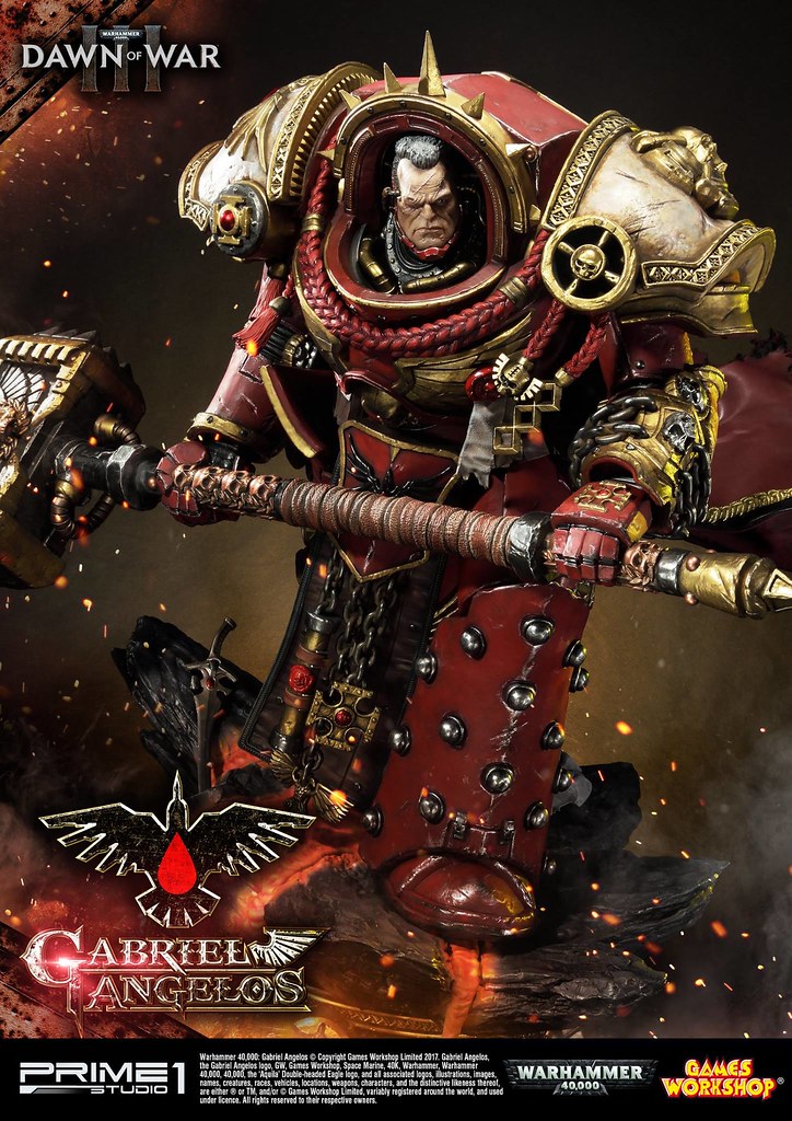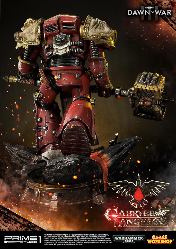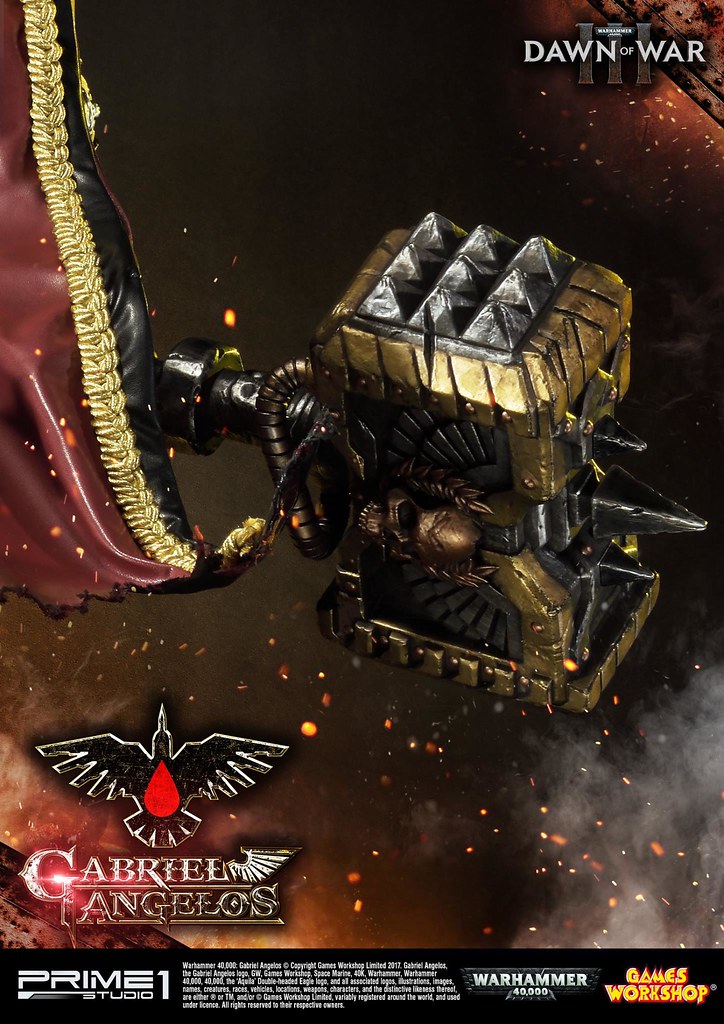 這次所發行的作品,是出自《戰鎚40000 : 破曉之戰》系列的主角,率領著血鴉第三連隊的連長、身著特徵的深紅色終結者裝甲(Terminator Armor),被譽為血鴉戰團歷史中最偉大的傳奇英雄 - 加百列‧安傑羅! 本作將把特徵的終結者裝甲厚重感完全忠實呈現,並強化了遊戲中的造型;粉絲們熟悉的招牌武器 - 鐵鎚“裂神者”(God-Splitter)也以極具震撼的大型尺寸精緻地立體化!